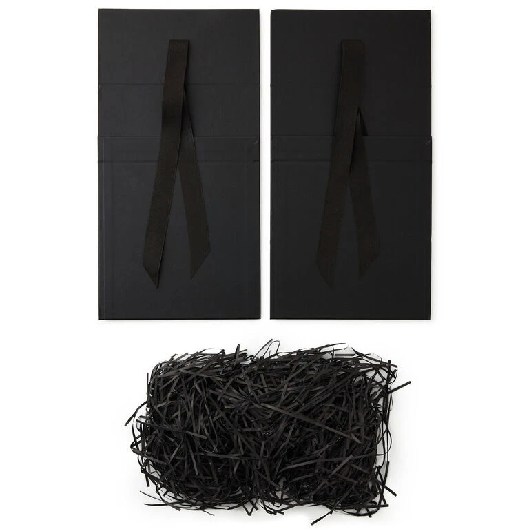 Hallmark 8″ Square Black Gift Boxes With Paper Shred, 2-Pack